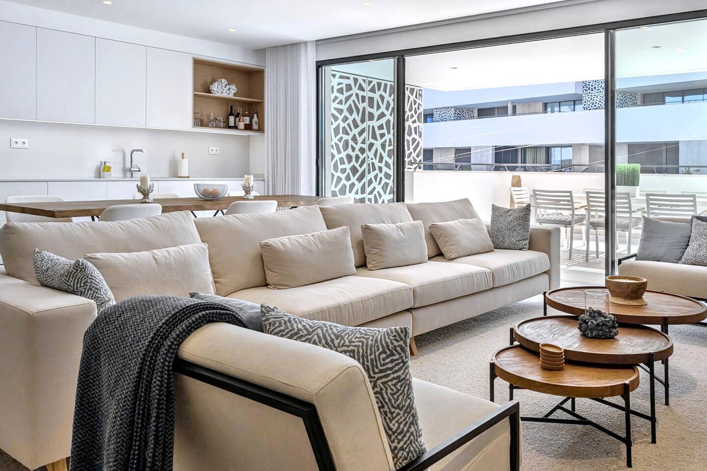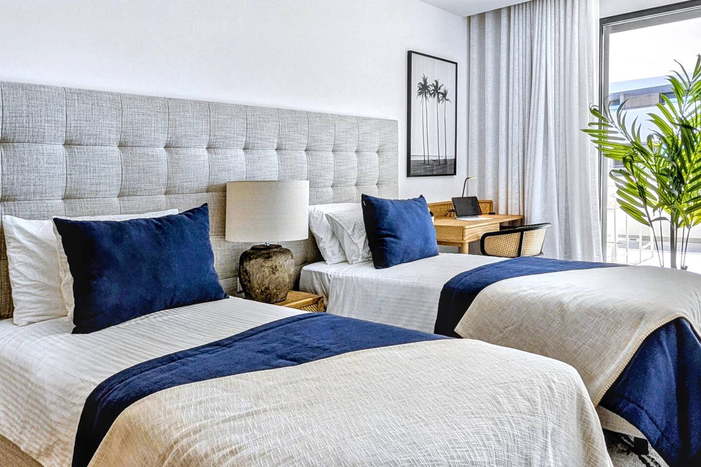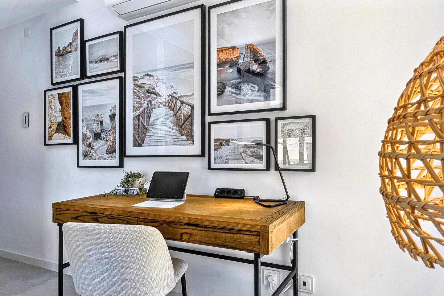 Algarve Escape features: 151 m2 (1750 ft2) interior | 3 bedrooms / 2 baths: king, king, 2 twin (can be converted to King) 160 m2 (1830 ft2) terrace | 3 zones – The Patio (dining), The Lounge, The Green (private jacuzzi) Amenities: community pool, children’s pool, gardens, gym, dry sauna, therapy room (out call massage therapist), jacuzzi (private terrace) Professionally designed space | high-quality furnishings Bright, airy corner unit with sunny western facing terrace from mid-morning each day. Partial sea view from The Green terrace. Fully stocked kitchen: Nespresso coffee| air-fryer |toaster|toastee grill | dishwasher | induction stove Fast 250 MBPS Wi-Fi Private washing machine & dryer 3 dedicated workspaces (primary bedroom, twin bedroom, and The Study) Interior spaces offer AC|Heating + underfloor heating Beach chairs and umbrellas for guest use Alexa audio devices for music and digital assistance. Blue tooth speaker for beach and terrace ambiance. 2 underground assigned parking|additional free off-street parking 7-15 min walk to Old Town & Marina 10 min walk to beaches < 5 min walk to neighborhood cafés and groceries 5 min walk to tennis and pickleball (paddle) courts (+€/$)