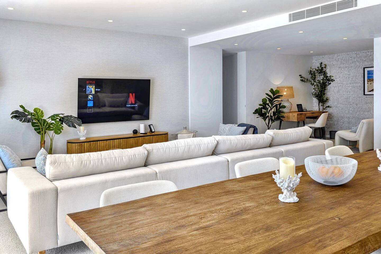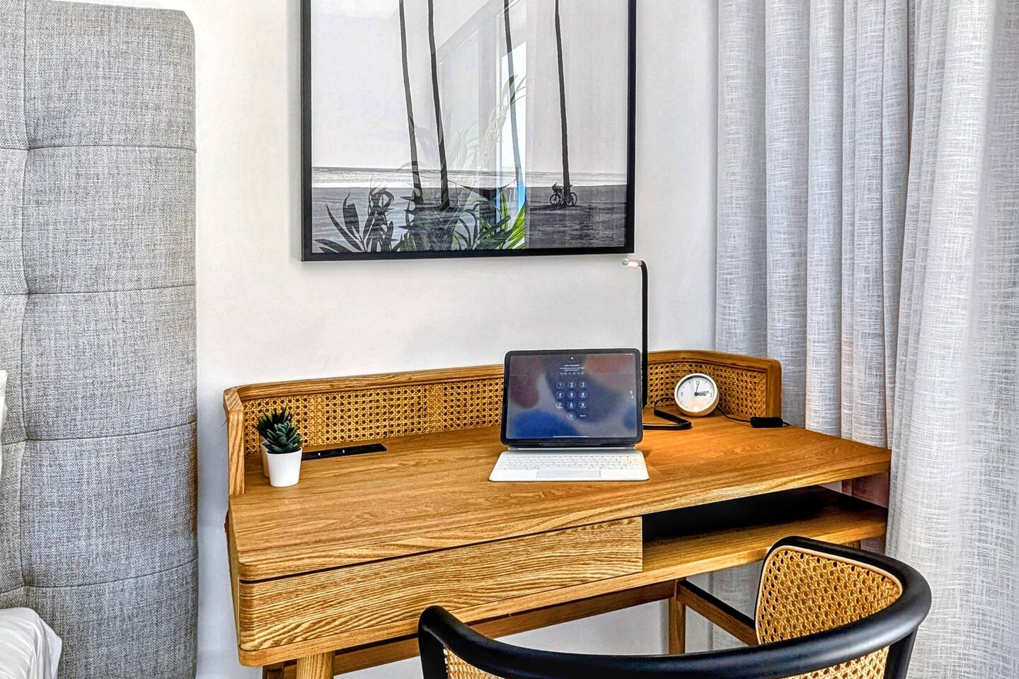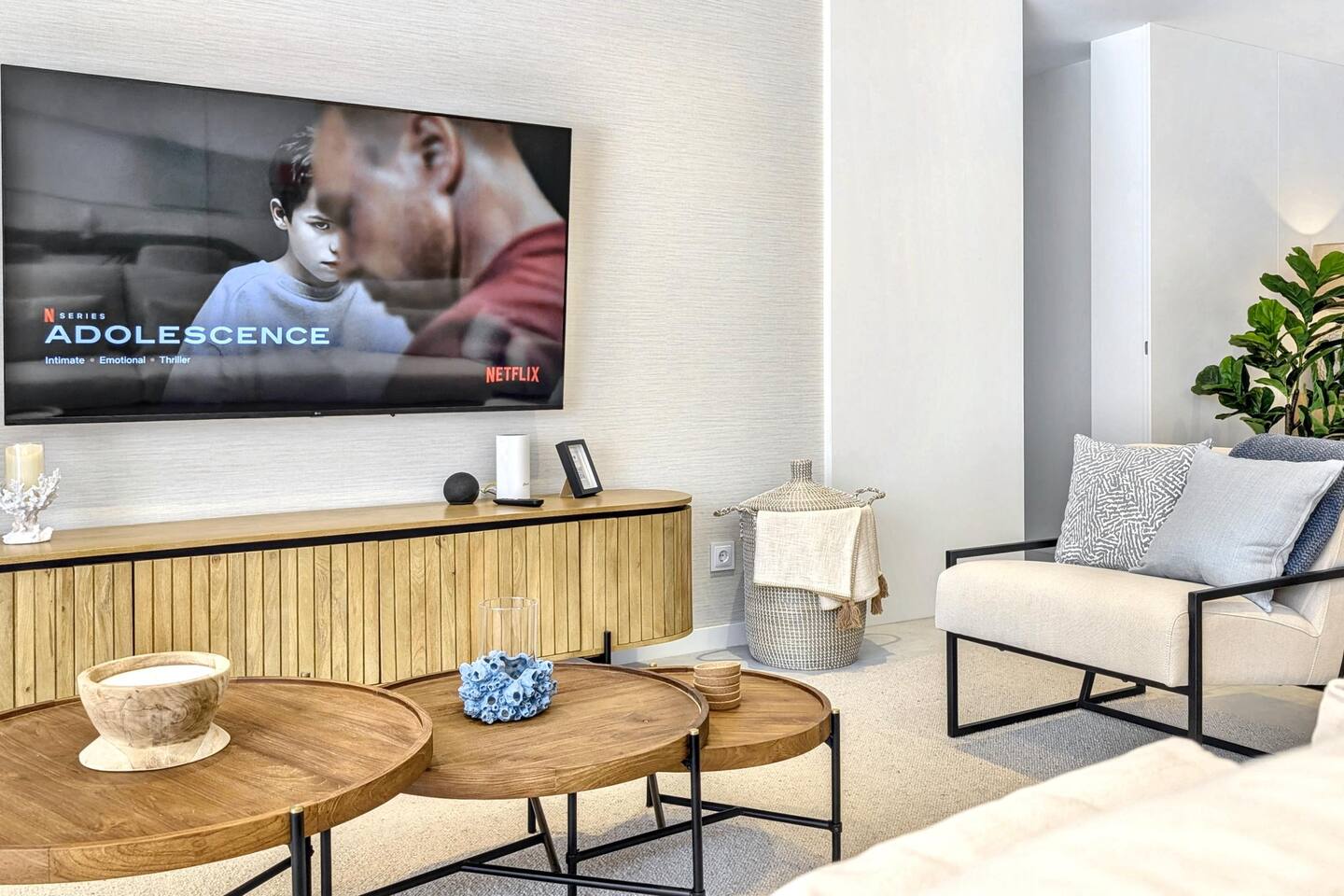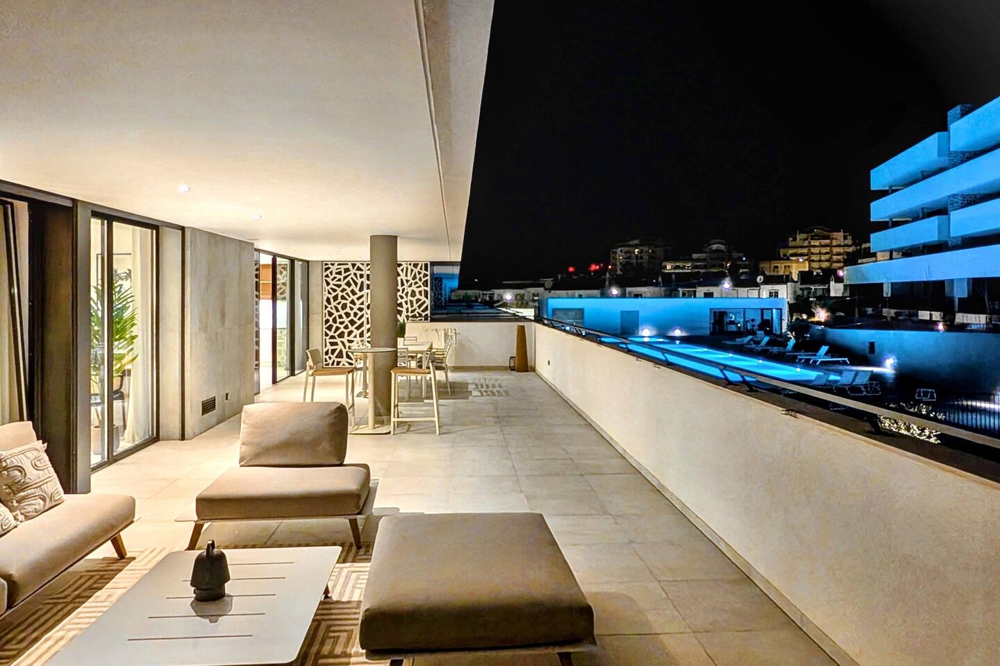 Algarve Escape features: 151 m2 (1750 ft2) interior | 3 bedrooms / 2 baths: king, king, 2 twin (can be converted to King) 160 m2 (1830 ft2) terrace | 3 zones – The Patio (dining), The Lounge, The Green (private jacuzzi) Amenities: community pool, children’s pool, gardens, gym, dry sauna, therapy room (out call massage therapist), jacuzzi (private terrace) Professionally designed space | high-quality furnishings Bright, airy corner unit with sunny western facing terrace from mid-morning each day. Partial sea view from The Green terrace. Fully stocked kitchen: Nespresso coffee| air-fryer |toaster|toastee grill | dishwasher | induction stove Fast 250 MBPS Wi-Fi Private washing machine & dryer 3 dedicated workspaces (primary bedroom, twin bedroom, and The Study) Interior spaces offer AC|Heating + underfloor heating Beach chairs and umbrellas for guest use Alexa audio devices for music and digital assistance. Blue tooth speaker for beach and terrace ambiance. 2 underground assigned parking|additional free off-street parking 7-15 min walk to Old Town & Marina 10 min walk to beaches < 5 min walk to neighborhood cafés and groceries 5 min walk to tennis and pickleball (paddle) courts (+€/$)