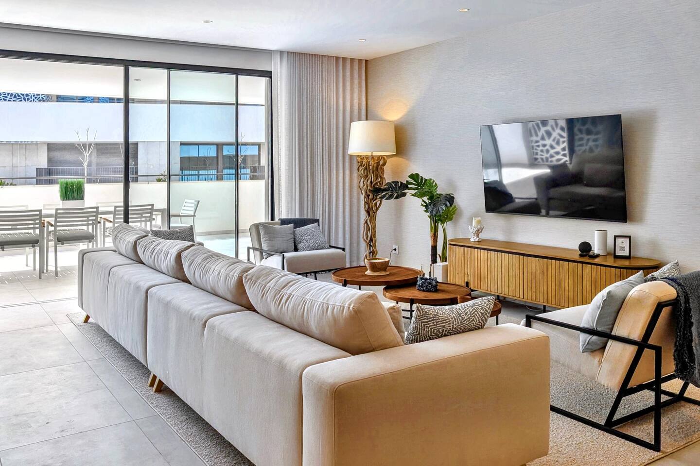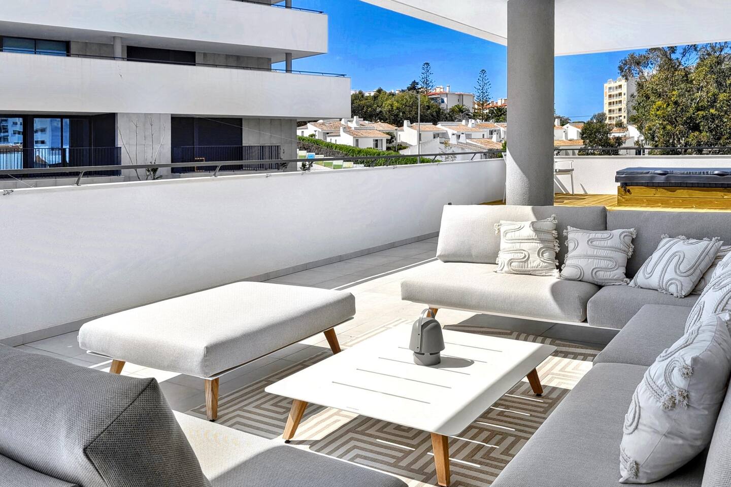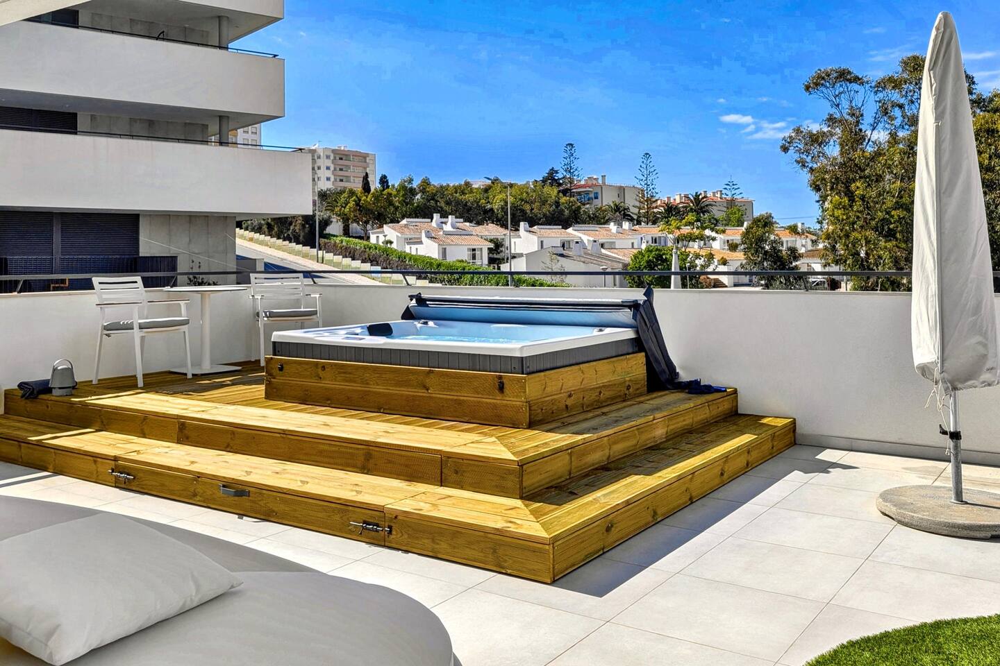 Stunning 3-bedroom / 2-bath apartment with massive sunny terrace offers partial sea views and private hot tub, overlooking pool & garden with a short 5 - 10 min walk to Lagos Old Town and beaches. Beautifully designed spaces, fully fitted kitchen, and high-end wellness amenities like pool, sauna, gym and hot tub (private) will provide the perfect Algarve Escape for you.