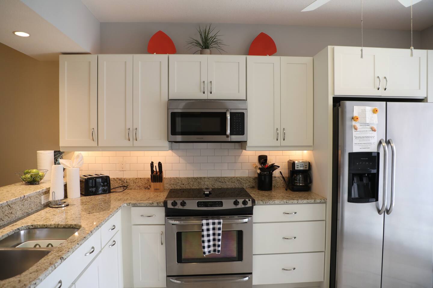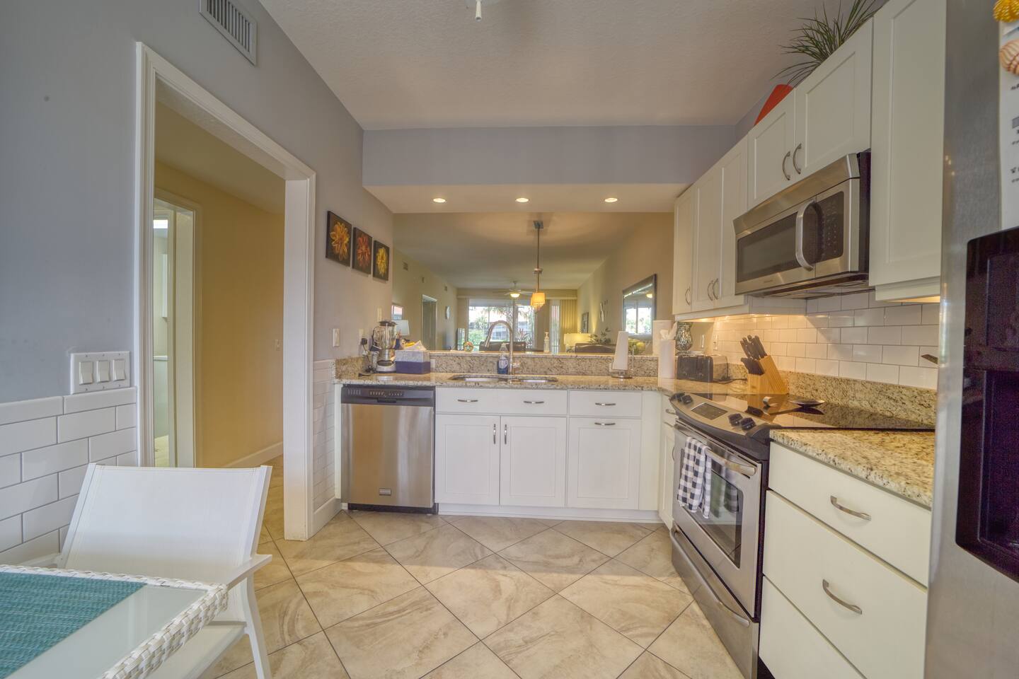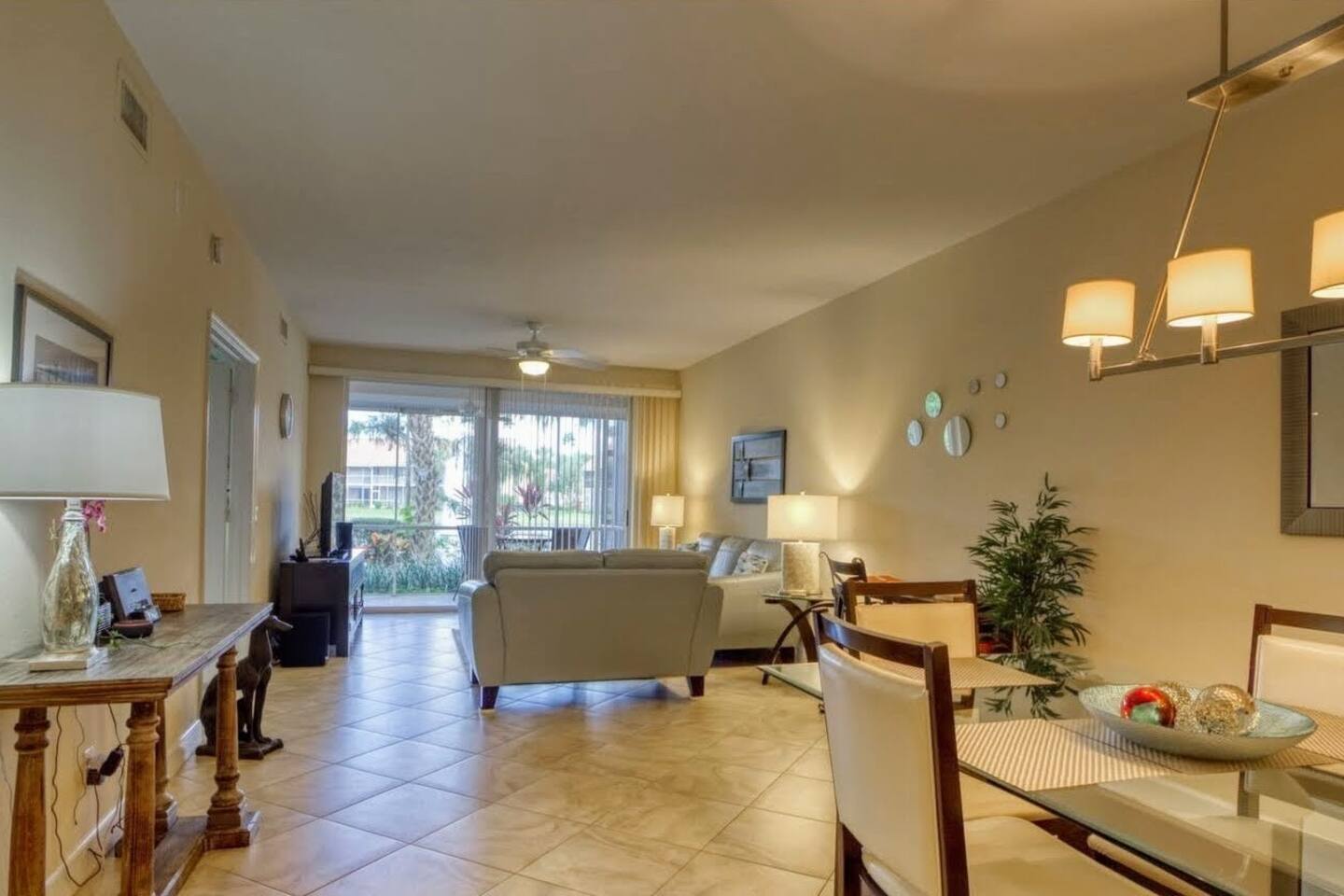 If you've been looking for the perfect getaway in Napes, look no further. 'Paradise Found' is ready to meet the needs of the most discerning guests. We purchased 'Paradise Found' in 2012 and completed a top to bottom renovation of the home the same year. In 2021, we completed an update of the living room furniture, bedding, and other furnishment ensure guest comfort. Its stately gated entrance gives way to a grand boulevard lined with trees, flowers and waterfalls leading to the home and its lakefront views. With a chef's ready granite and stainless kitchen and spa-like 2 headed walk-in shower with bench seating, we think you'll agree that 'Paradise Found' has everything you'll need for the perfect trip to Naples. Imagine the sun climbing over the palm trees and glistening off the lake as you sip your morning coffee on the expansive rear lanai. A 20 foot high fountain provides a soothing backdrop to the view of the private island complete with its own coconut, banana and bird of paradise vegetation. The island's lush foliage provides great shade for a late afternoon snack or glass of wine. Back at 'Paradise Found' you will enjoy a 2 BR / 2 BA 1351 sq ft under air with front (79 sq ft) and rear lanais (165 sq. ft) giving this end-unit villa lots of light and an airy feel. You'll love its walk in showers with invigorating rain shower heads with grab bars for easy access, 2 lanais (front and rear) for enjoying the tropical sights and sounds, and its contemporary yet comfortable furnishings including large screen flat paneled wall mounted televisions with surround sound. We've spared no expense to ensure that Paradise Found is ready to meet your perfect vacation wish-list. The unit has fast WIFI internet and unlimited long distance calling to keep in touch with friends and family. And when you are ready to step out of the villa, Falling Water's rich amenities are at your door. Its 13,000 sq. ft pool (one of largest in SW Florida) with waterfalls and islands is a great spot to relax, meet neighbors from around the world, and catch some sun. The clubhouse complex has 2 tennis courts and shaded / screened bocce courts. The 2.1 mile neighborhood walking / biking path is a great way to get some exercise. Outside of Falling Waters' gates lie Naples' superb amenities including world-class gulf beaches and shopping, arts centers, fishing and nature preserves all within 10 - 15 minutes drive. 5th Ave is within a short 10 min drive. We've been vacationers in Naples for over 15 years and we are confident that you are going to love Paradise Found not only for its luxury and comfort, but how easy it is to take advantage of all that Naples has to offer. We invite you to book your stay today! The unit has 2 BR / 2 BA. The master BR is a King Bedroom and offers an oversize walk in shower with grab bars, a stone bench, and 2 spa like rain shower heads. The guest BR can be configured as 2 twins or a king based on your preference. The guest bath includes a walk in shower with grab bar and sliding glass doors. We provide 4 beach chairs, umbrella and beach towels for your use along with 2 bicycles. We're happy to share our tips and recommendations in a booklet we'll leave for your reference. We're confident you'll love Naples as much as we do! Please note this is a 100% non-smoking unit including the exterior lanai. No smoking is permitted.