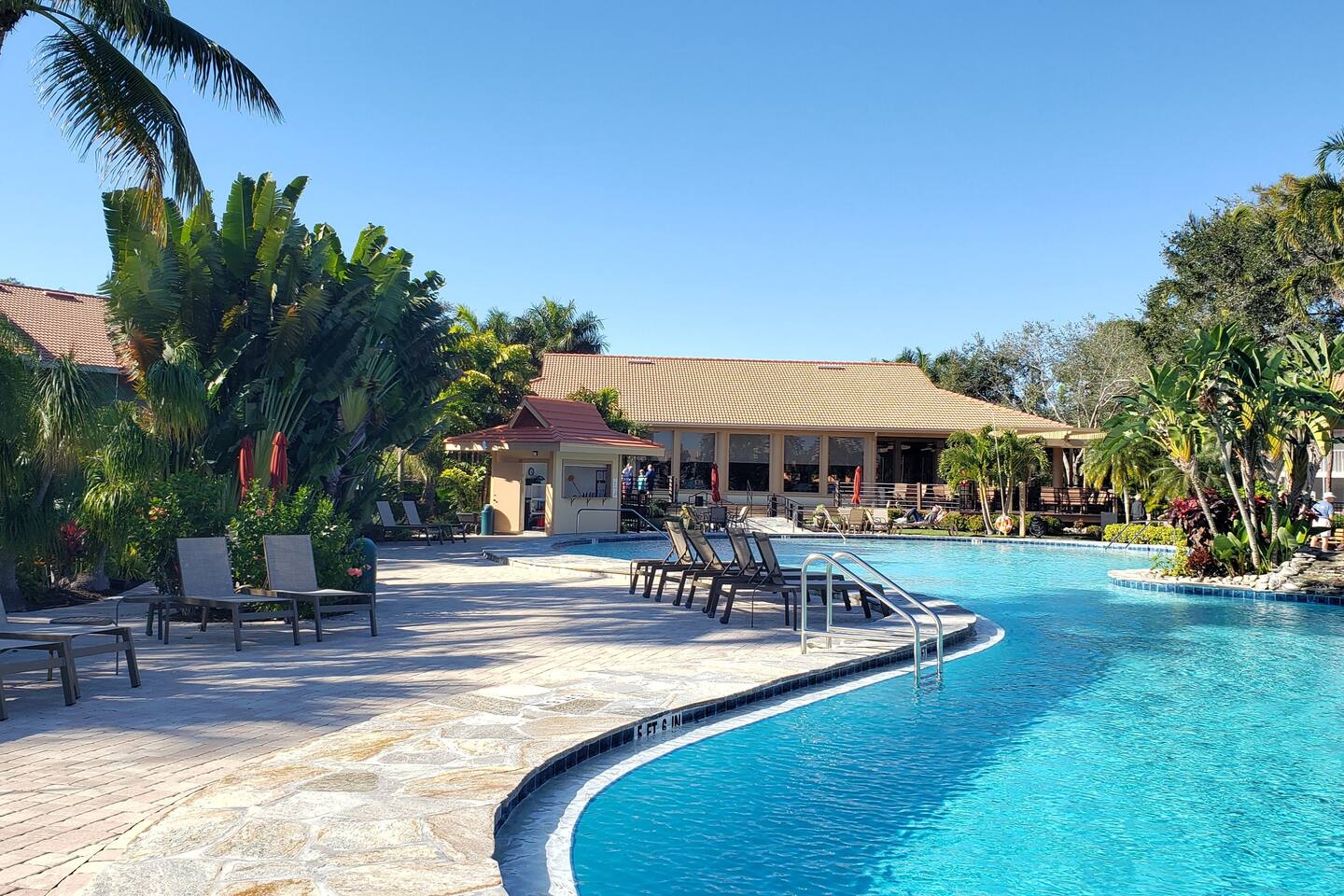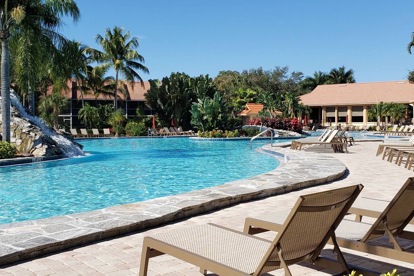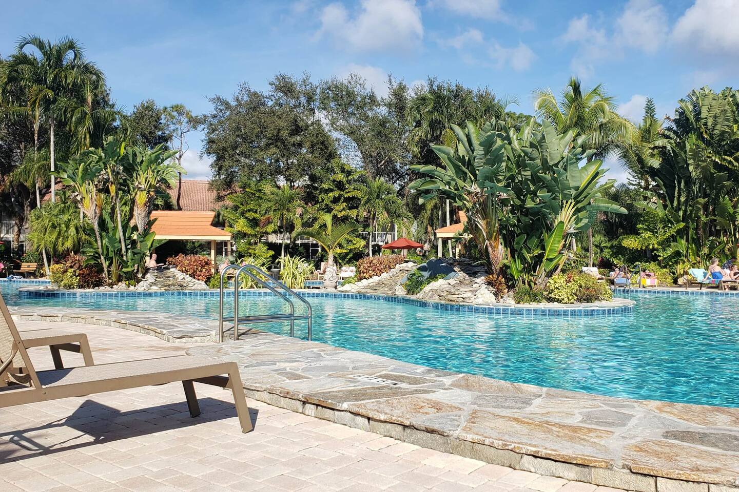 No steps, resort pool in lush setting (Naples, FL)