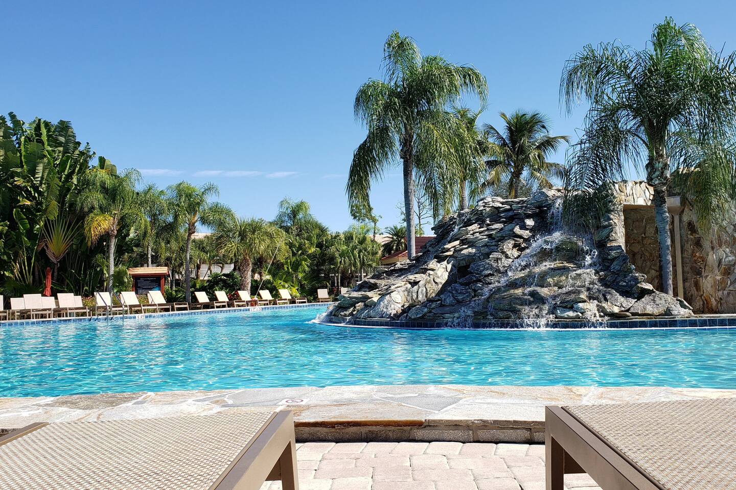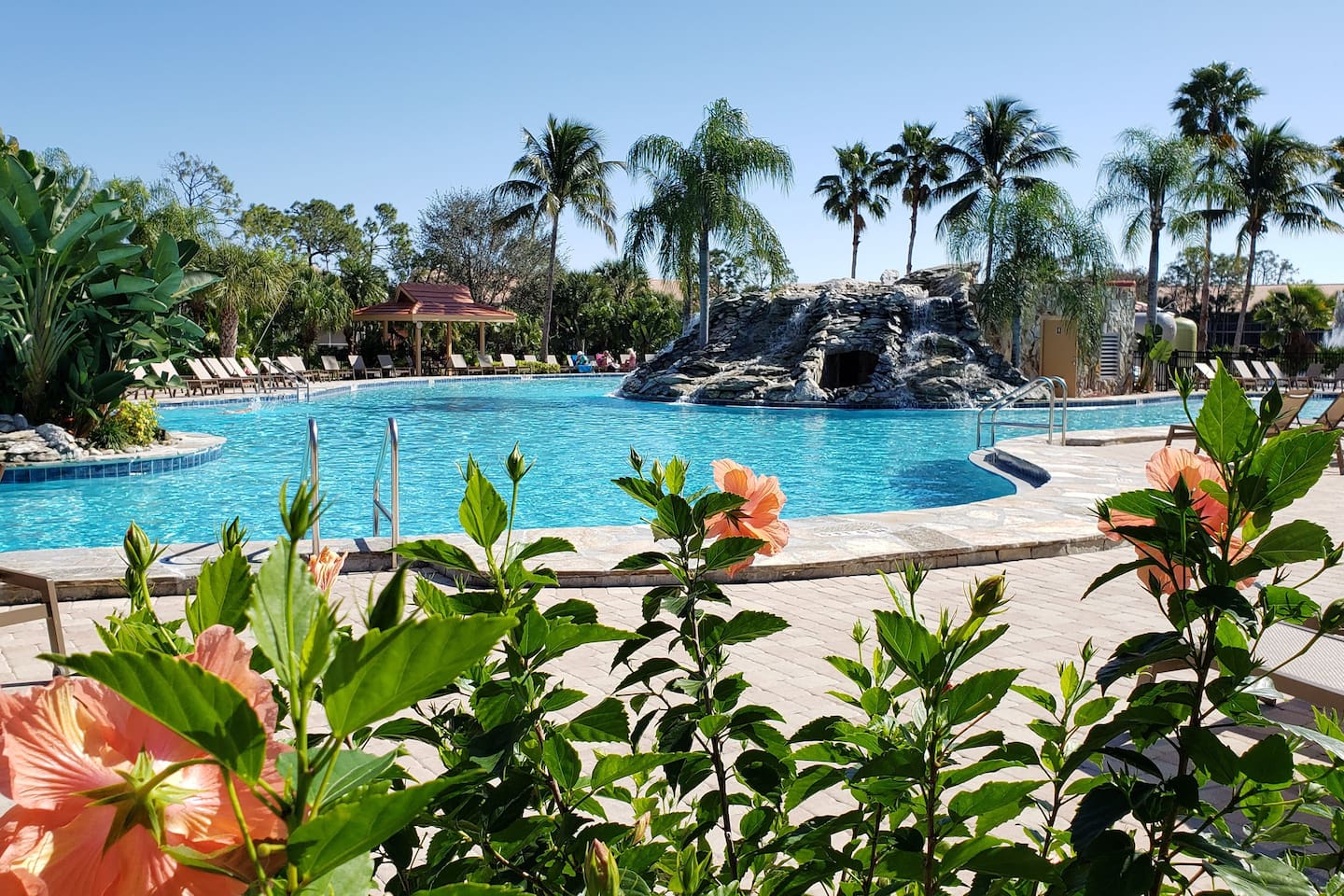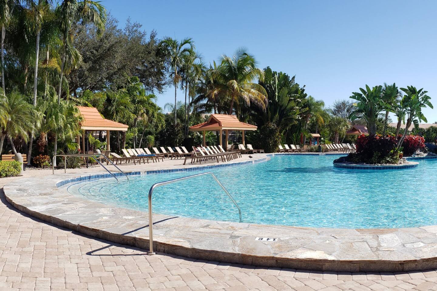 No steps, resort pool in lush setting (Naples, FL)